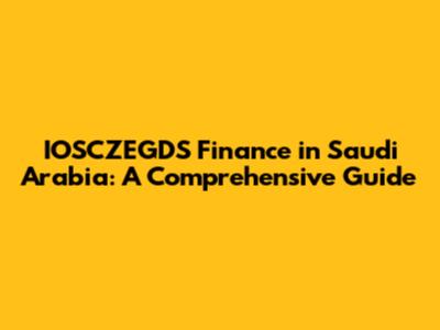 The Significance of IOSCZEGDS Finance in Saudi Arabia