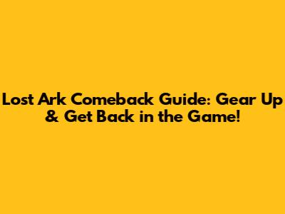 Lost Ark Comeback Guide: Gear Up & Get Back In The Game!