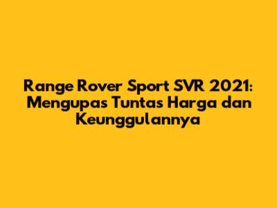 Berapa harga Range Rover Sport SVR 2021? Harga Range Rover Sport SVR 2021 bervariasi tergantung pada opsi tambahan, pajak, dan biaya lainnya. Silakan hubungi dealer resmi untuk informasi harga terbaru.