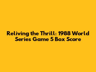 Hey baseball fanatics! Ever feel that nostalgic itch for the golden age of the sport? Well, let's fire up the time machine and head back to 1988, specifically to Game 5 of the World Series. This wasn't just any game; it was a defining moment in baseball history, brimming with drama, unforgettable performances, and that unmistakable energy only a World Series clash can deliver. So, grab your peanuts and Cracker Jacks, and let's dive into the 1988 World Series Game 5 box score, shall we?
