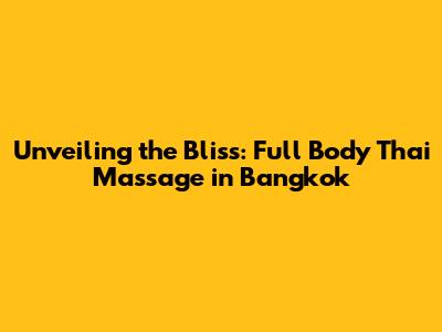 Unveiling The Bliss: Full Body Thai Massage In Bangkok